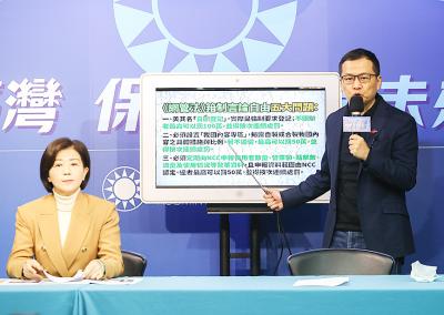 FREEDOM OF SPEECH: Rather than reflecting on the public outcry over CTi News having its license revoked, the government is doubling down, Alicia Wang said The Chinese Nationalist Party (KMT) yesterday accused the government of attempting to control free speech on the Internet with its plans for an over-the-top media services management act. While the National Communications Commission’s (NCC) draft version of the act would allow over-the-top media service providers to register on what the NCC has described as a “voluntary” basis, under the same act, the agency could also require mandatory registration of providers based on measures such as their number of users, revenue, amount of traffic or market influence, or for some other major public interest, the KMT said. The draft act proposes a fine of up to NT$1 million (US$35,149) for those who do not register as requested, with the possibility of further fines, the party said. Article 13 of the draft act states that if the NCC determines that a provider’s content is “harming national security,” or “harming public order or good morals,” the provider could be fined up to NT$1 million if corrections are not made within a specified time frame, with the possibility of further fines, the KMT added. The proposed act would allow the government to “suppress people’s comments on the Internet,” KMT Institute of Revolutionary Practice director and Taipei City Councilor Lo Chih-chiang (羅智強) said at a news conference in Taipei. The KMT said that if the act proposed by the NCC is implemented, “in the future, there will be no freedom of speech in Taiwan.” KMT Culture and Communications Committee director-general Alicia Wang (王育敏) said the government should not “test the public’s limits,” as there continues to be some anger about the removal on Saturday of CTi News after the NCC rejected the channel’s application to renew its broadcasting license. “The anger has turned into support,” she said, citing an increase in subscribers to CTi News’ YouTube channel to more than 2 million. Instead
