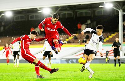 Tottenham Hotspur and Liverpool on Sunday remain tied at the top of the English Premier League after both were held to 1-1 draws at Crystal Palace and Fulham respectively, while Pierre-Emerick Aubamyeng’s own-goal condemned Arsenal to another shock home defeat, going down 1-0 to Burnley. Leicester City took advantage of the slipups by the top two to close to within one point of the leaders as James Maddison scored twice in a 3-0 rout over Brighton & Hove Albion, while Southampton moved up to fourth as they also comfortably saw off Sheffield United 3-0. Liverpool and Tottenham face each other at Anfield tomorrow and, after Chelsea, Manchester City and Manchester United failed to win on Saturday, they both missed the chance to open up a gap at the top. The champions needed a Mohamed Salah penalty 11 minutes from time to avoid an embarrassing defeat at Fulham after a dreadful first-half performance left Liverpool manager Juergen Klopp seething on the touchline. “We needed half an hour to get our feet in the game, that’s why I shouted a bit at them,” Klopp said. “I think in the first half an hour we could have lost the game, in the last 60 minutes we should have won it. In the end we get a point and that’s it.” A thunderous finish into the far corner by Bobby DeCordova-Reid to take the lead was no more than Scott Parker’s side deserved as the returning Alisson Becker kept Liverpool in the game before halftime. Liverpool dominated the second half to pin Fulham back, but needed a penalty to salvage a point when Aboubakar Kamara was penalized for handling Georginio Wijnaldum’s free-kick. Salah slammed the penalty low and just beyond the grasp of Alphonse Areola, but Fulham comfortably saw out the final 10 minutes to the delight of 2,000 fans at