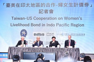 Taiwan and the US have teamed up to take part in the Women’s Livelihood Bond 3 (WLB3) initiative — a collaboration that American Institute in Taiwan Director William Christensen yesterday touted as “a testament to the United States’ and Taiwan’s commitment to the shared value of promoting women’s development and prosperity.” The partnership was announced at a news conference at the Executive Yuan in Taipei, with Minister of Foreign Affairs Joseph Wu (吳釗燮), Executive Yuan Minister Without Portfolio John Deng (鄧振中) and International Cooperation and Development Fund (ICDF) Secretary-General Timothy Hsiang (項恬毅) joining Christensen. Created by the Singapore-based Impact Investment Exchange (IIX), the Women’s Livelihood Bond Series is a series of debt securities to empower women in Southeast Asia by creating sustainable livelihoods, officials said at the event. WLB3 — the third tranche in the US$150 million four-part initiative — would assist 175,000 to 185,000 female entrepreneurs and socioeconomically disadvantaged women in Indonesia, India, Cambodia and the Philippines by financing loans, marketing and production and living expenses, they said. Taiwan is participating in the WLB3 as a responsible member of the international community, and to reinforce ties in the region and bolster the government’s New Southbound Policy, as well as strategic cooperation with the US in the Indo-Pacific region, Wu said. “The US-Taiwan collaboration on the Women’s Livelihood Bond builds upon our existing cooperation on several successful platforms and initiatives, such as the Global Cooperation and Training Framework, the Women’s Economic Empowerment Summit, and our collaboration in APEC,” Christensen said. “We often describe our relationship with Taiwan with the phrase: ‘Real friends, real progress — zhen pengyou, zhen jinzhan (真朋友,真進展). But this is not just about advancing US-Taiwan ties. It is about like-minded partners standing together to promote common values and shared interests,” he said. “We are proud to stand with Taiwan and other like-minded partners