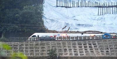 Two-way operations on a single Taiwan Railways Administration (TRA) track between Rueifang (瑞芳) and Houtong (猴硐) stations in New Taipei City partially resumed yesterday for the first time since a massive landslide on Nov. 4. The agency managed to clear the debris on the east mainline of the track by 9pm on Sunday. The first train to travel through the section since the landslide arrived at Houtong Railway Station at 5:17am and was greeted by Minister of Transportation and Communications Lin Chia-lung (林佳龍), who was waiting on the platform. He distributed some money to the construction crew as a reward for their hard work. “Our construction crew managed to achieve the goal despite inclement weather conditions over the past 10 days, removing more than 10,000m3 of debris,” he said. Lin said it would take more than one-and-a-half months to fix the west mainline, but the Ministry of Transportation and Communications would use the time to find ways to reinforce side slopes and study the possibility of building a rock shed. Reopening only the east mainline would not severely affect operations, as long as trains are properly deployed, he said. Trains operating through the damaged section of the line must observe a 40kph speed limit, and the TRA has installed monitoring instruments along the line to ensure the safety of train operations, Lin said. The TRA yesterday canceled five train services that had been scheduled to travel through the section, but all services are expected to resume today, he said. The TRA is reviewing guidelines governing the maintenance of side slopes, and would adopt stricter standards to monitor and inspect side slopes to ensure the safety at some key sections, Lin added.
